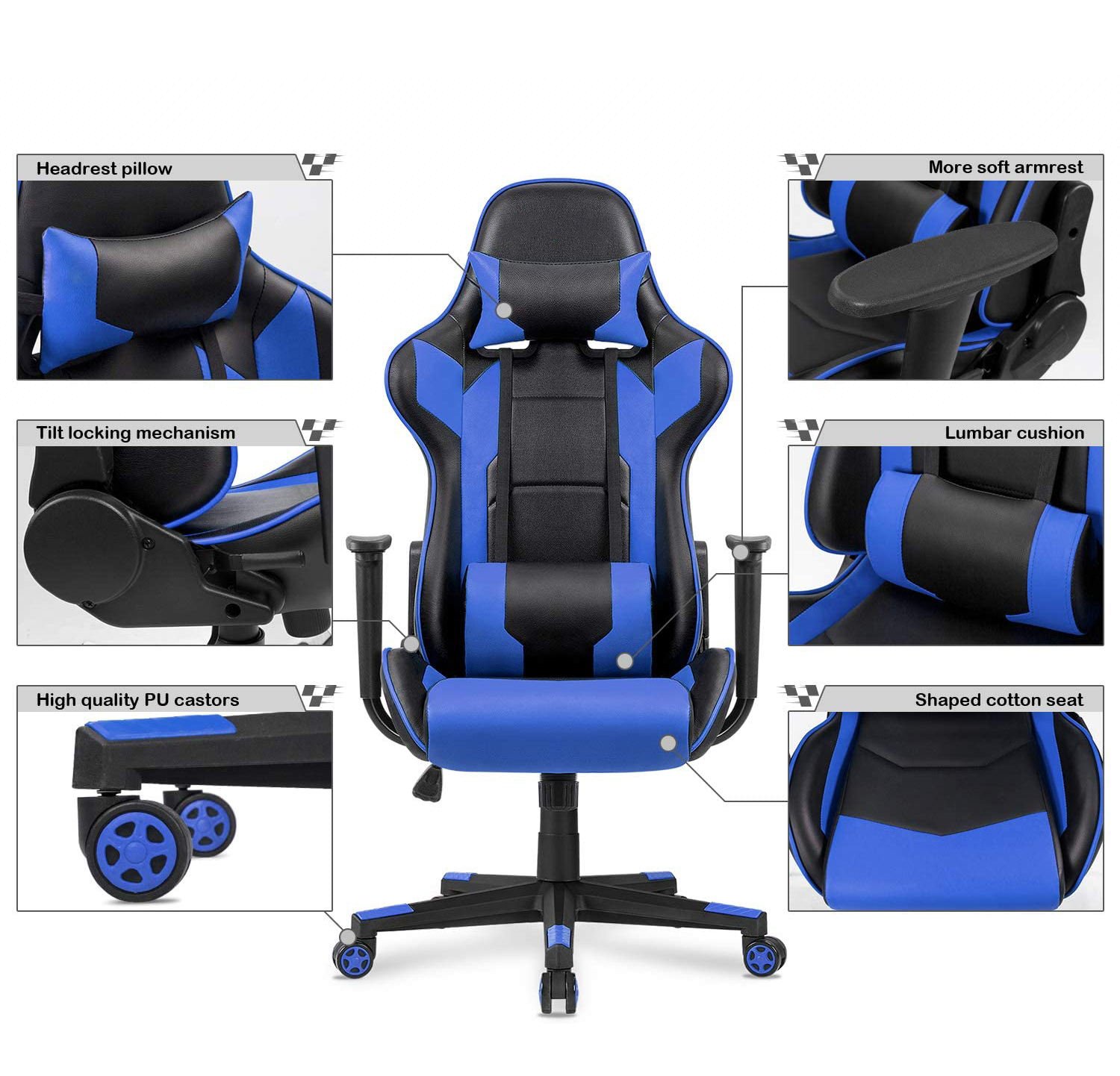 With a modern racing-style look, this gaming chair adds a bold and professional appearance to your gaming setup, home office, or workstation. The height-adjustable mechanism allows you to customize the chair according to your desk and seating preference, while the wide base provides extra stability and support.