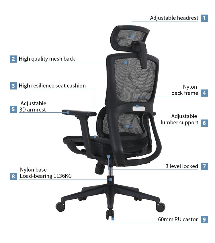 Experience unparalleled comfort and support during long hours at the office with our ergonomic masterpiece. The mesh back design promotes airflow, keeping you cool and comfortable throughout the day.